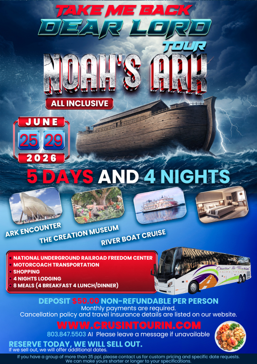 Get the full experience. Days of Biblical Events and stories of how it all came to be. This is a tour you don't want to miss out on.